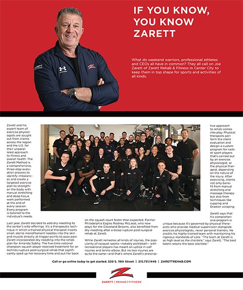 Zarett Rehab & Fitness specializes in orthopedics, sports rehabilitation and fitness training. Our 12,500-square-foot state-of-the-art rehabilitation and fitness center is located just off Rittenhouse Square.